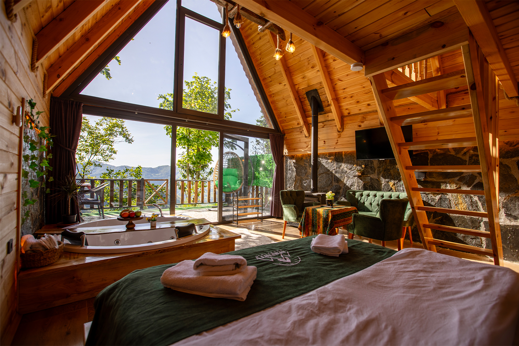 Geniş ve ferah olacak şekilde tasarlanmış odamızda ; oturma alanı , mini mutfak , doğa manzarasına karşı küvet , TV , Wİ-Fİ ve geniş ferah banyosu ile sizleri bekliyor. Her şey sizin konforunuz için düşünüldü.
